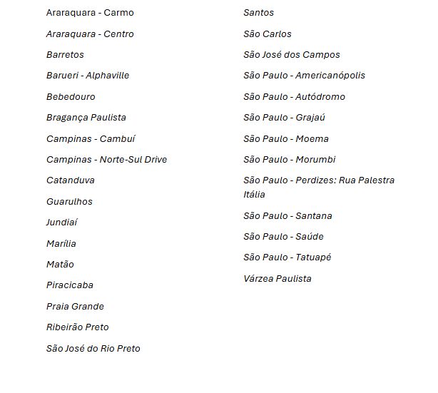 Unidades echope no estado de São Paulo